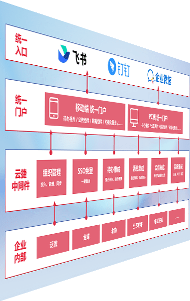 对协作平台提供支持服务,,支持企业应用与协作平台对接,,,,包含组织同步、、消息集成、、、、待办集成等。。。。支持目前主流的协作平台:钉钉、、、、企微和飞书。。。